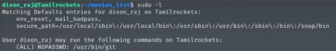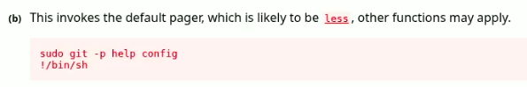 To exploit this binary and gain root access, we can use GTFObin, a free online resource that lists various ways to exploit binaries. While exploring for privilege escalation techniques in GTFObin, I came across a command related to the git binary that caught my eye.